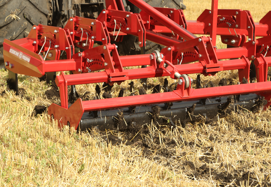 For additional crumbling of the topsoil and levelling of the field surface, even distribution of plant residues, the tool is equipped with twin spur rollers.